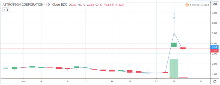 En la gráfica adjunta, de ASTC, podemos observar que luego de un día de gran volumen y una corrida impresionante, la acción hace un gap down, por lo que se podría planificar el short contra la resistencia, en este caso, el open del día anterior, alrededor de 3.64.