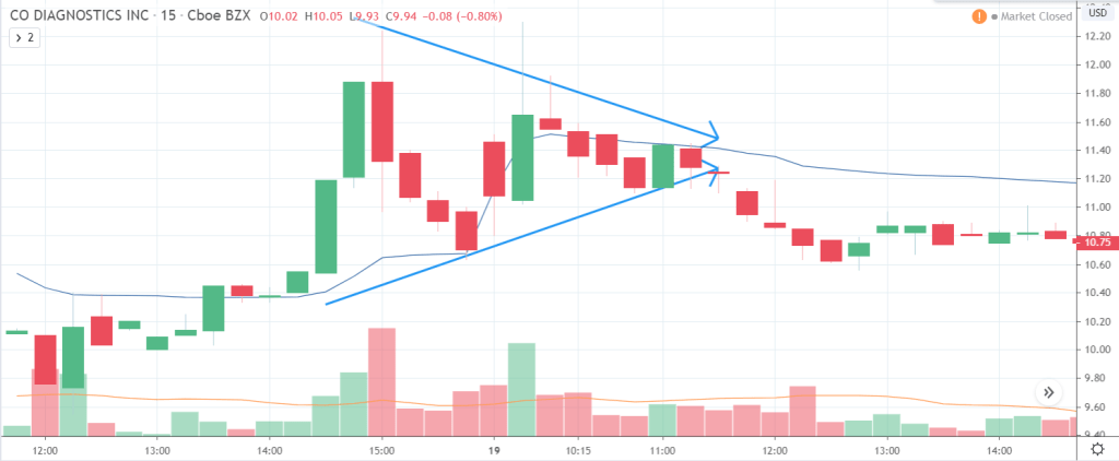 Generalmente luego del primer spike se produce un retroceso no mayor al 50% de la corrida, con menos volumen y más gradual, tomando forma de arco hasta llegar nuevamente al nivel de la resistencia. El segundo retroceso generalmente es con menos volumen que el primero y menos pronunciado, para finalmente recuperar la tendencia alcista con un incremento de volumen significativo, generando el breakout.