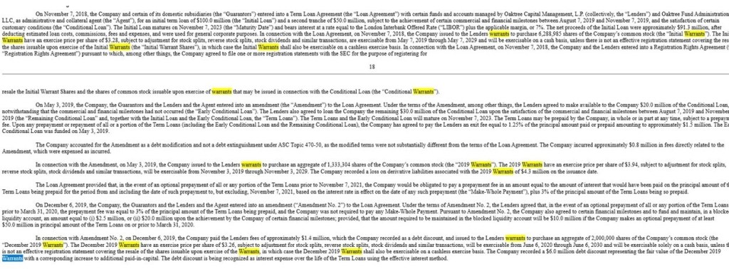 Generalmente existe una sección que resume lo que ha ocurrido en términos de warrants en los últimos años de donde podemos obtener información importante sobre cantidad de acciones de las warrants y el precio de ejercicio. Evidentemente, a medida que sean más lejanas a la fecha actual mayor la probabilidad de que hayan sido ejercidas, pero en todo caso nos dará una idea de la política de la compañía frente al financiamiento tóxico.