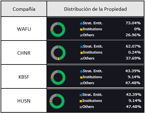 - CHNR: China National Resources Holding que procesa y comercializa metales no ferrosos obtenidos de minas en China