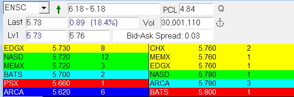 El Spread es la diferencia entre los precios de Bid y Ask actuales. Este puede variar de unos pocos céntimos hasta centavos o incluso dólares dependiendo de la liquidez que exista en determinado momento.